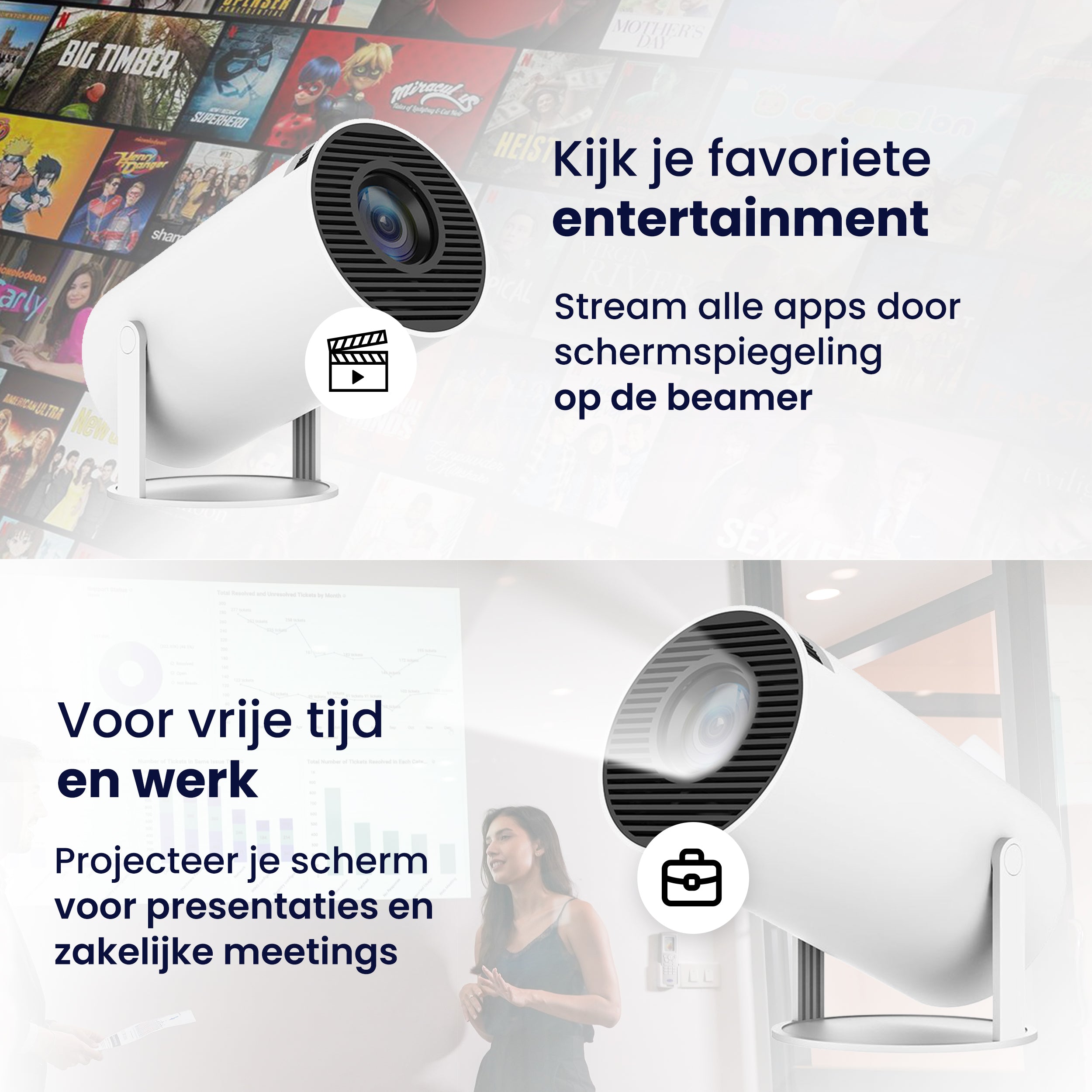 Ben jij op zoek naar een draagbare oplossing voor filmavonden thuis? Dan is de Horivue mini beamer perfect voor jou! Met zijn indrukwekkende 250 ANSI lumen en 4K beeldkwaliteit heb je een unieke bioscoopervaring in huis. En met WiFi, Bluetooth en Android 12, kun je moeiteloos streamen vanaf verschillende apparaten.