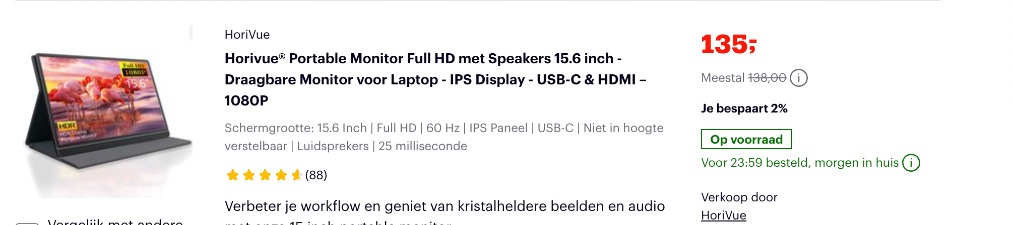Handig extra scherm, ideaal als je op verplaatsing bent, makkelijk op te bergen in meegeleverde case.
